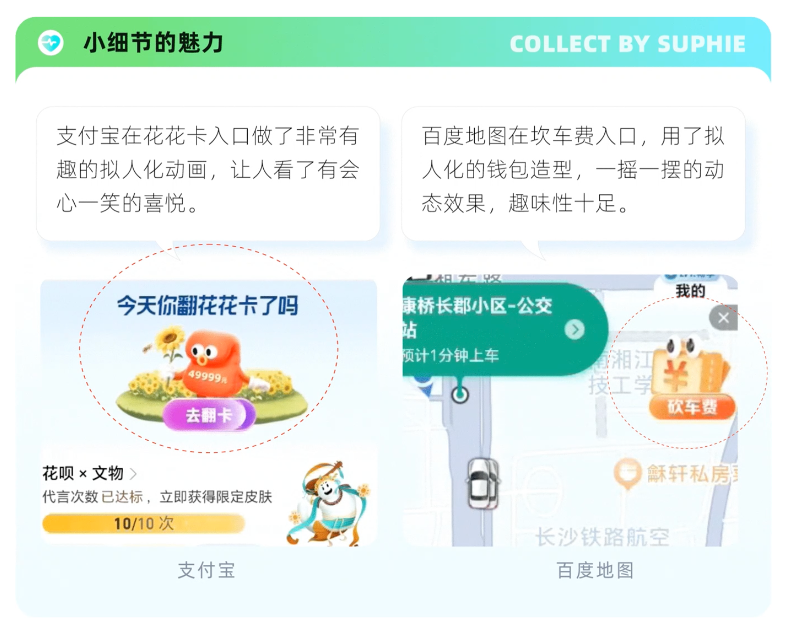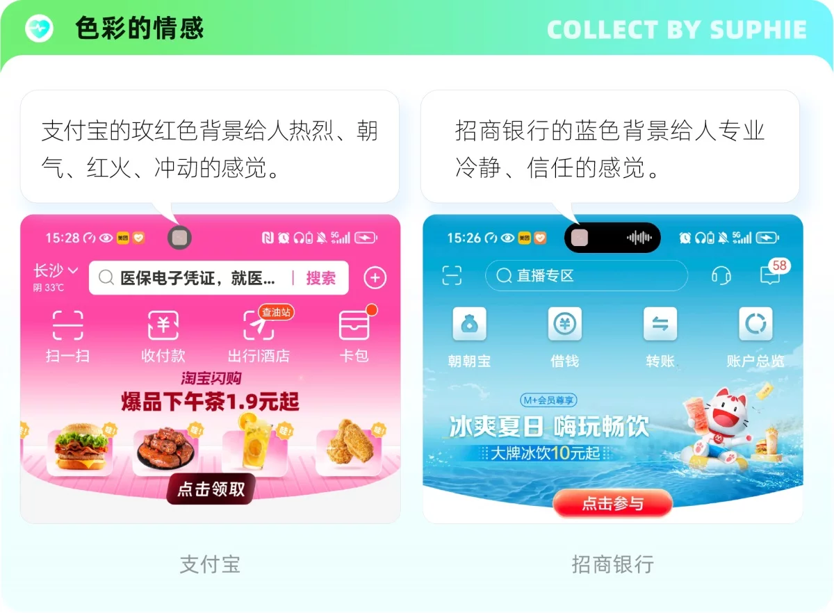 这些按钮的差异不仅仅是位置,还包含按钮的样式、颜色、尺寸等等维度都存在着明显差异。比如上图的,页面引导按钮,支付宝的转入转出按钮位置,都是一样的逻辑,也是我们在设计中的一些设计支持业务转化的一种方式。