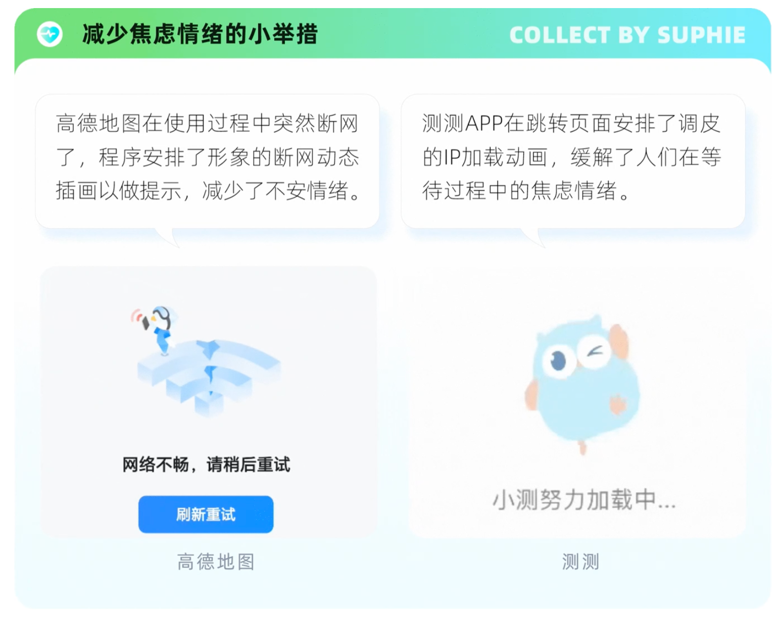 根据古腾堡原则,将标题和内容放在顶部即第一视觉区,引导用户浏览所有内容后注意到底部的按钮作为终端休息区,这样的摆放即符合用户由上到下的阅读习惯又达到了产品预期的目标。