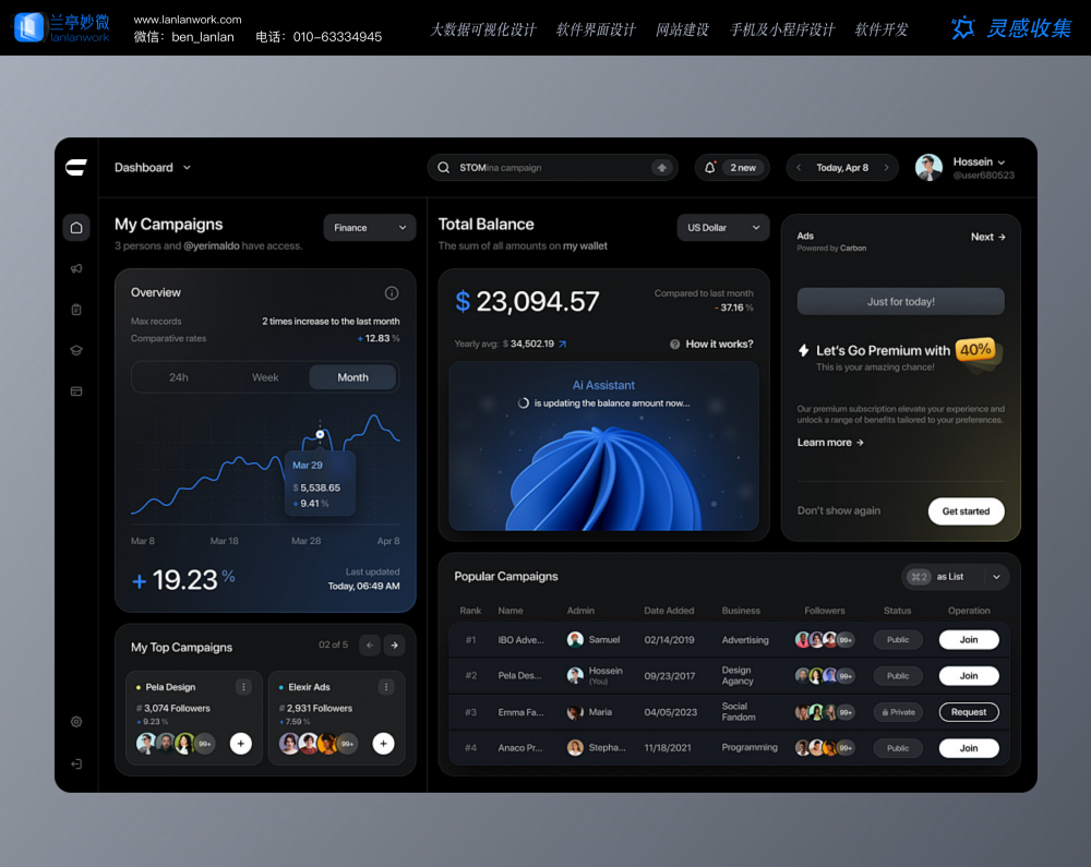 最近拆解的 5 组优质后台界面,恰好踩中了专业设计的核心逻辑,和兰亭妙微在B 端界面设计领域沉淀的实战经验不谋而合。今天就从设计视角,给产品经理和总监们分享 3 个破局方法论。