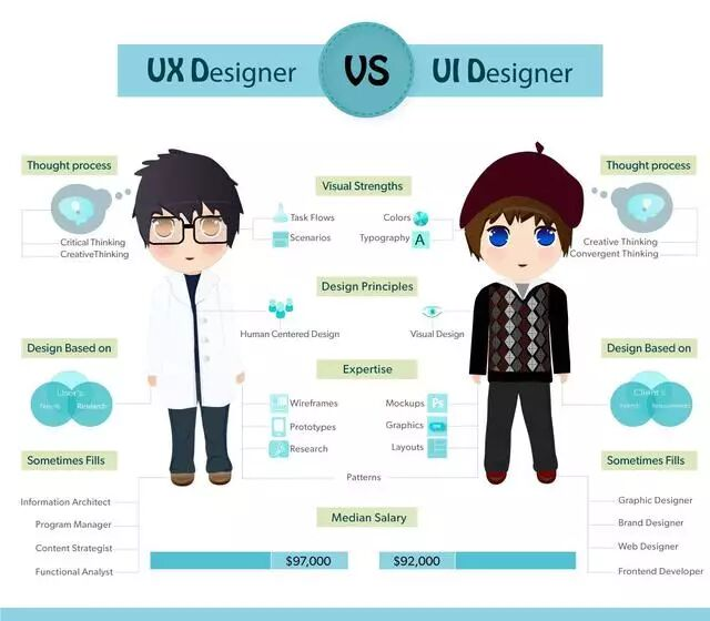 UX定义:UX专注于网站,它的行为与互动,比如一个盒子滑出,以及人们如何与它进行交互,比如他们会点击或输入进行交互。UX处理的内容和网站地图的结构。