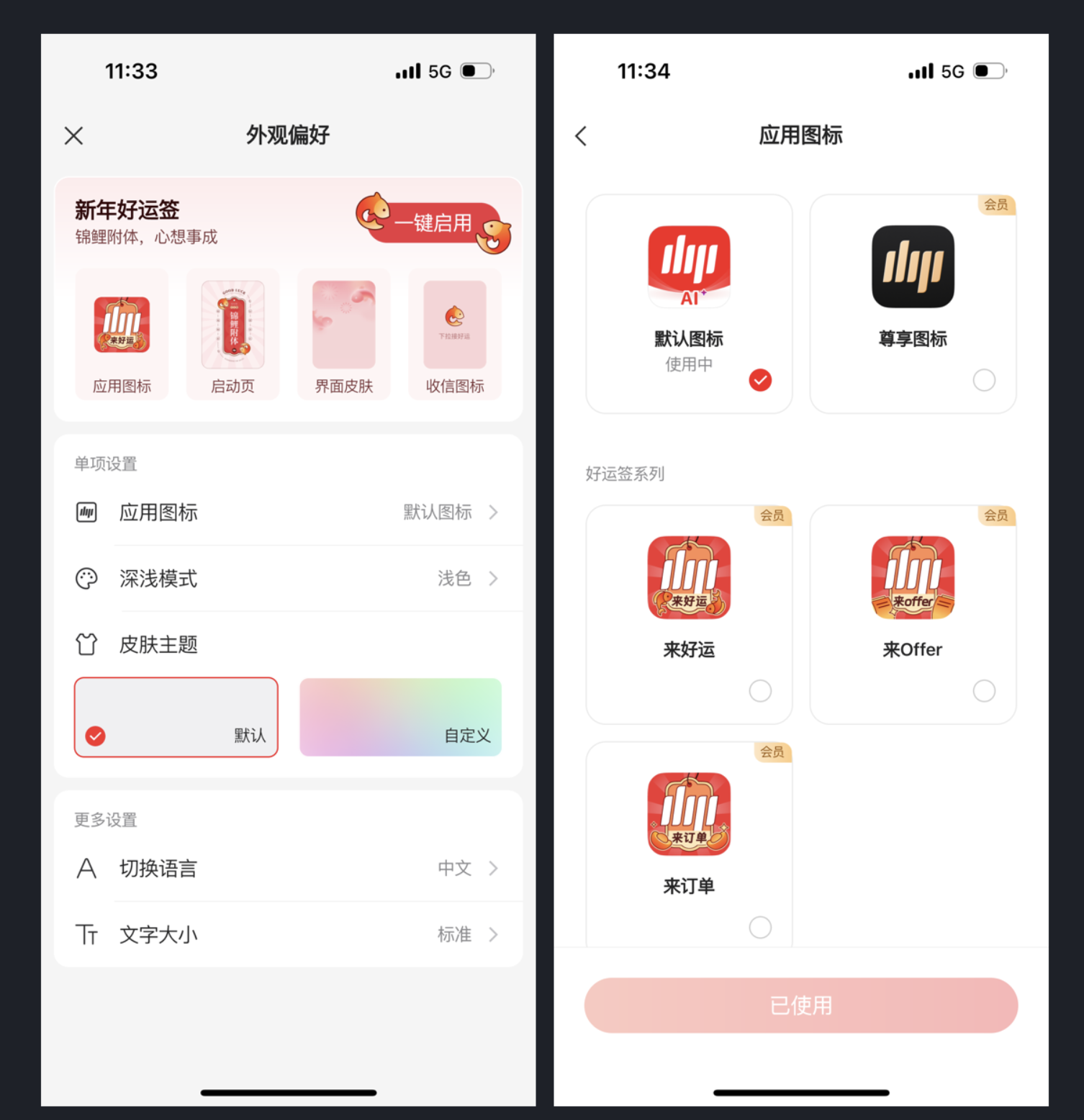 更贴心的是,这些设置都支持 “单项调整”—— 比如用户只想换图标,不用连带改皮肤;想调文字大小,也不用重新设置模式。这种 “精细化自定义”,让用户感觉 “这个 APP 是为我量身定制的”,不仅降低了审美抵触,还悄悄提升了用户对产品的好感度。
