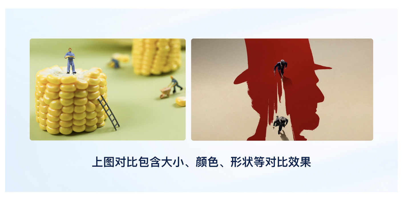 对比是帮用户 “抓重点” 的核心手段 —— 通过差异让关键元素(如按钮、重要信息)从界面中 “跳出来”,避免用户在信息海里找半天。常见的对比方式有 3 种: