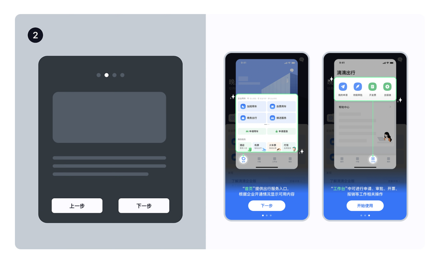 - 例子:滴滴企业版的新手引导,先讲 “首页有出行服务入口”,再讲 “工作台能审批、开票”,每步只传递一个信息,用户不会觉得混乱;