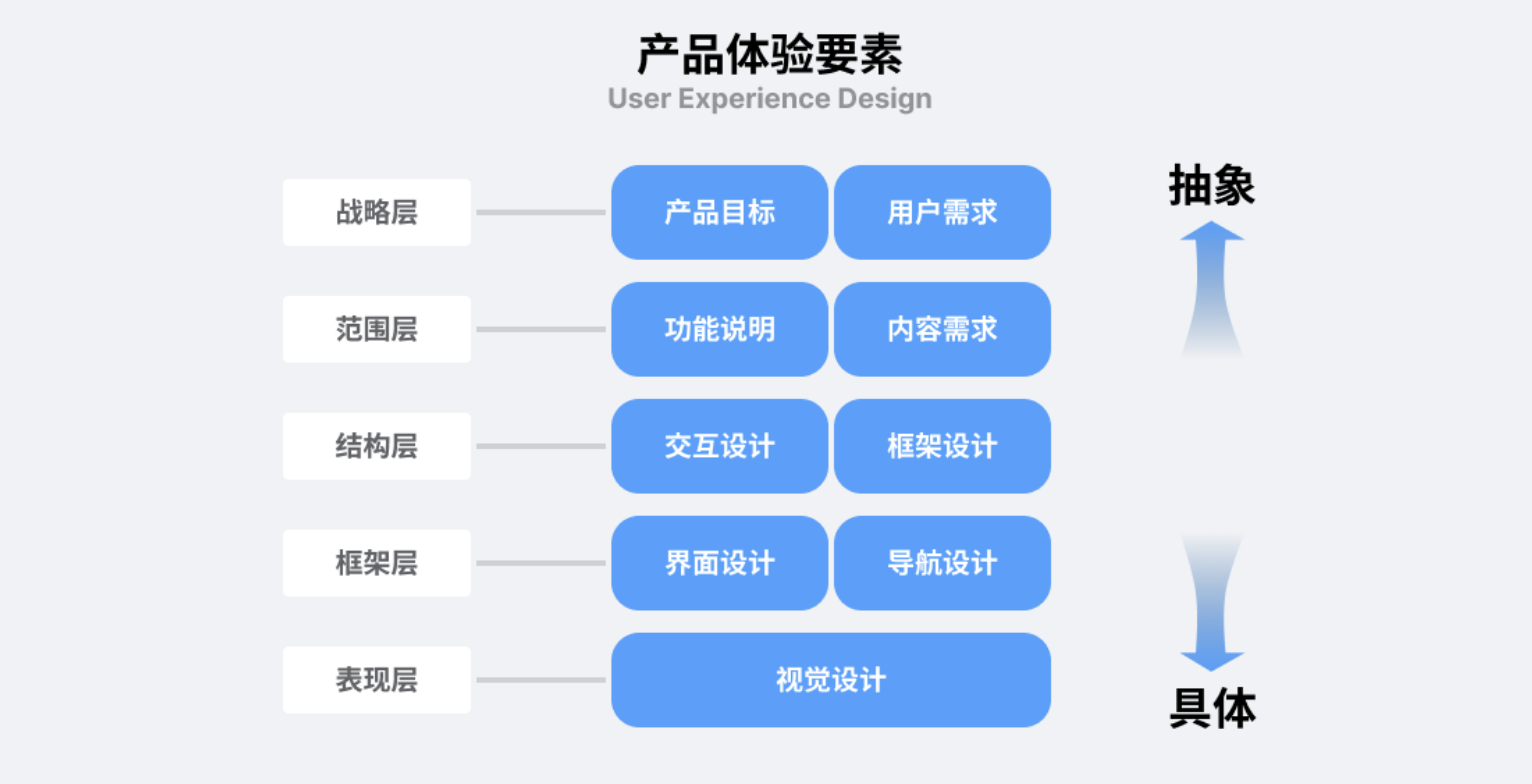 用户体验设计是一门 “以用户感受为核心” 的综合学科,涵盖交互、界面、品牌等领域,最终通过界面呈现,但需从 5 个层层递进的维度拆解,避免讨论时 “各说各话”: