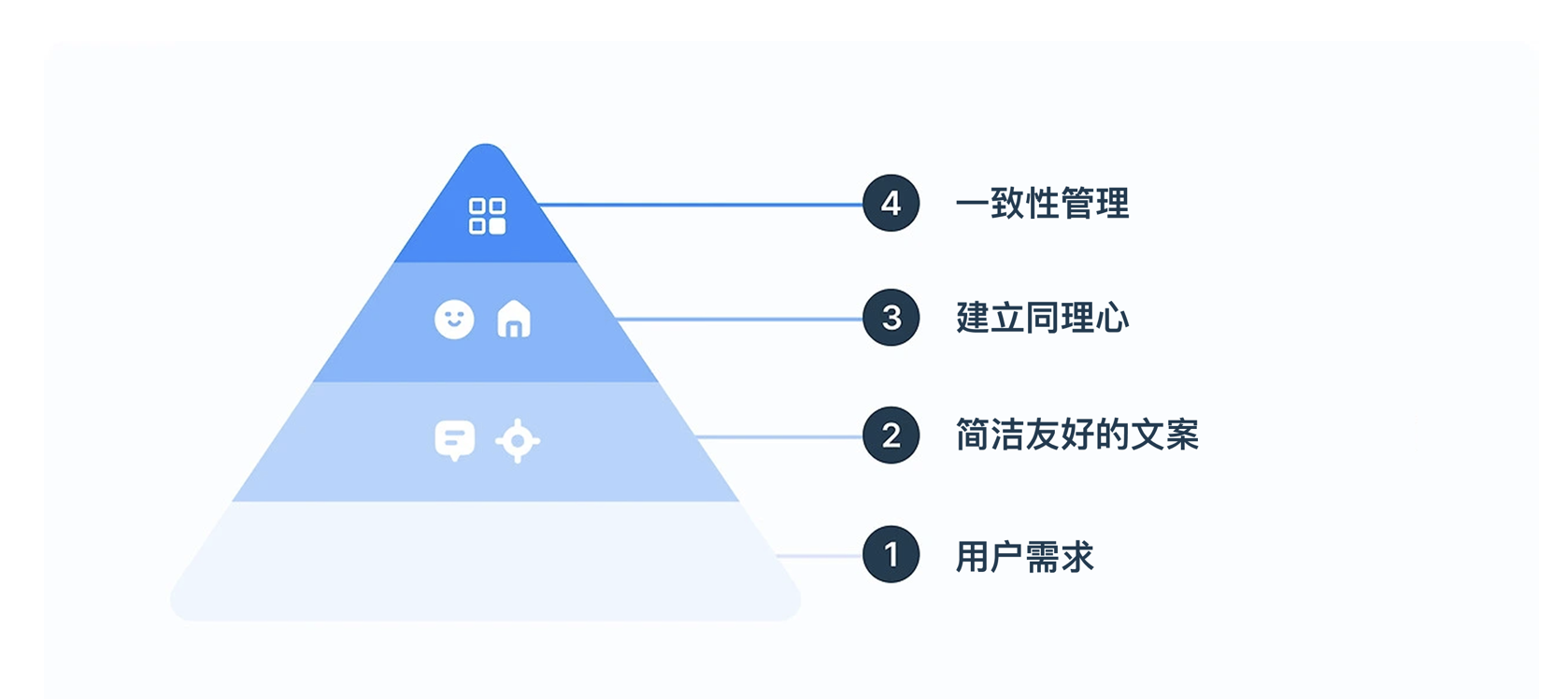 好的 UX 文案需要融合五个核心要素,且有明确的优先级层次,就像搭建一座房子,基础不牢,再华丽的装饰也没用: