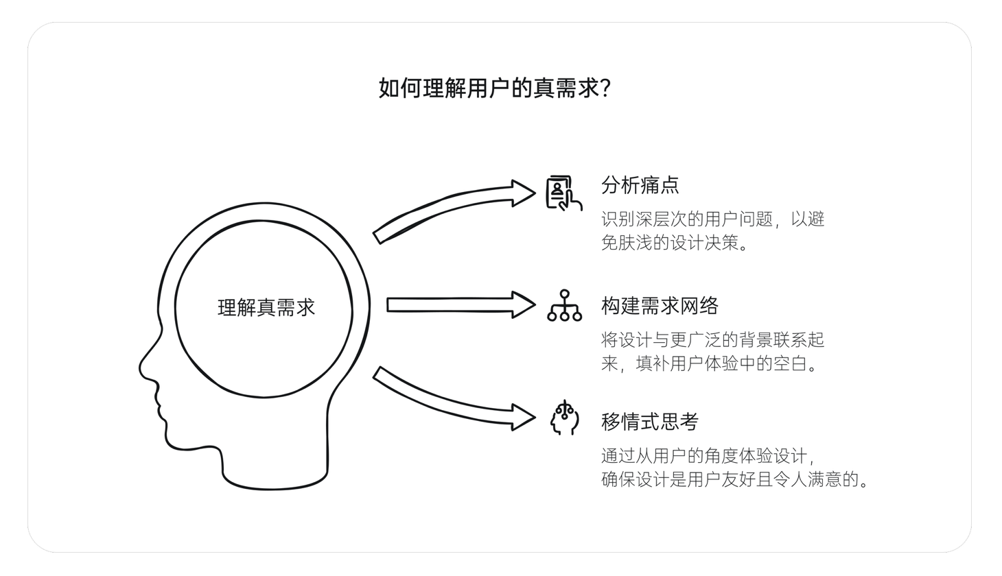 真需求的挖掘,从来不是被动接收信息,而是主动构建对用户的深层理解 —— 它要求设计师既是观察者,也是共情者。