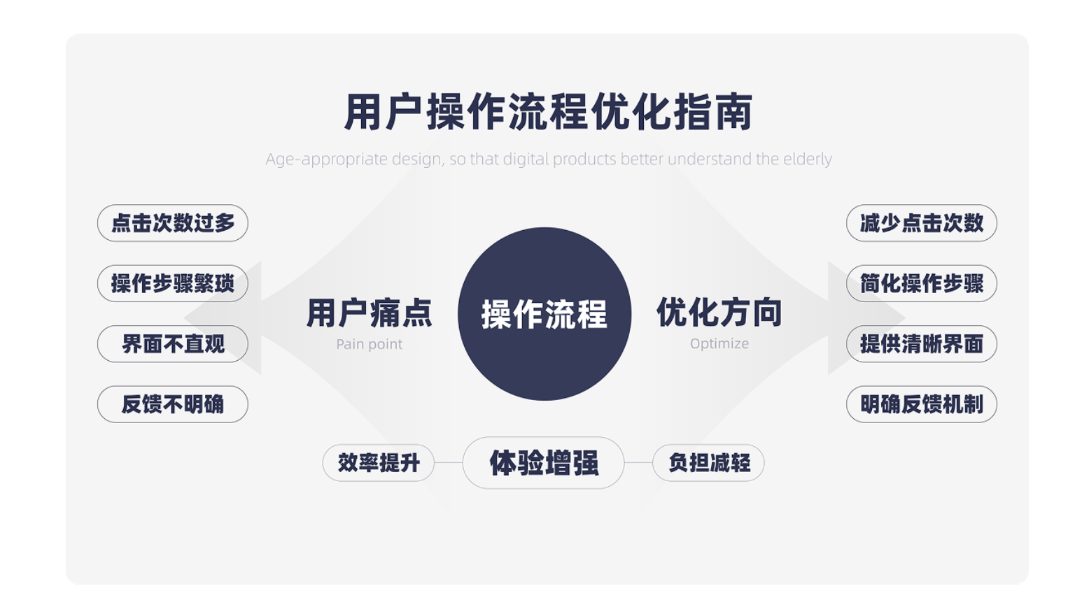 当数字化浪潮席卷生活的方方面面,线上打车、移动支付、网络购物已成为年轻人的日常。但对老年群体而言,复杂的操作流程、小巧的字体、繁琐的步骤,却构筑起一道难以逾越的 “数字鸿沟”。他们不是不愿拥抱科技,而是很多数字产品的设计忽略了其生理与使用习惯的特殊性。适老化设计的核心,正是通过细节优化让数字产品 “读懂” 老年人,而简化操作流程、降低使用门槛,便是破局的关键。