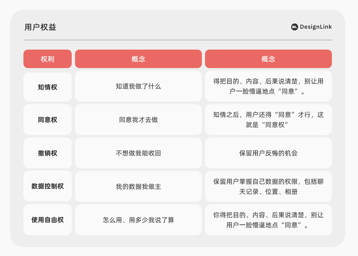 用户的核心权益,是产品设计不可触碰的底线。知情权要求产品明确告知数据用途、操作后果,不能用 “为了更好的服务” 这种模糊表述敷衍用户;同意权意味着授权必须是用户主动、明确的选择,而非默认勾选、强制捆绑;撤销权保障用户有反悔的余地,权限开启后应能随时关闭,订阅服务后可便捷取消;数据控制权赋予用户管理个人信息的权利,聊天记录、照片、位置等数据的收集与使用,用户应有绝对话语权;使用自由权则要求产品不能设置强制门槛,不授权非核心权限也应能正常使用基础功能。这五项权益,构成了用户在数字世界的 “权利基石”,也是产品赢得信任的前提。