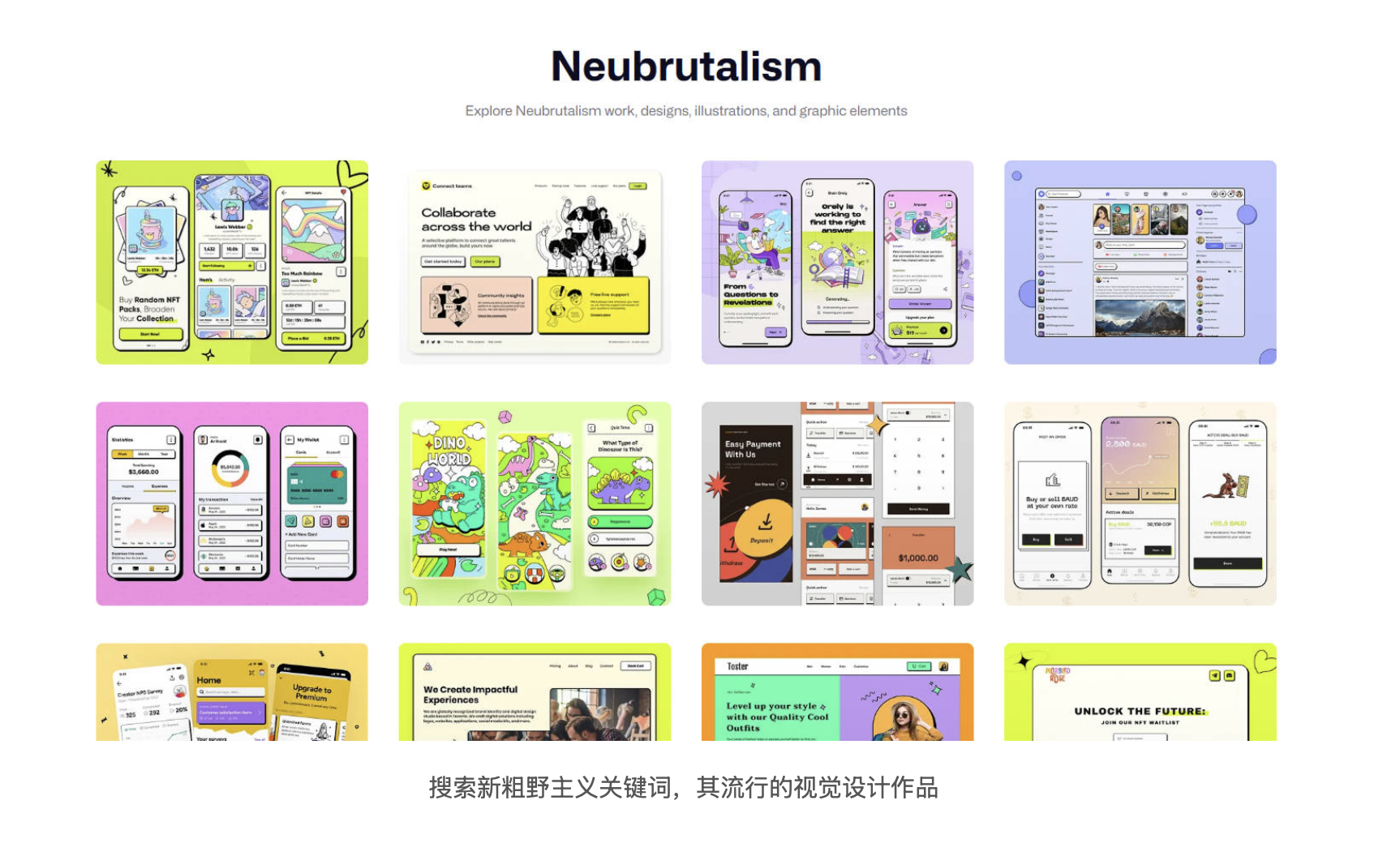 作为数字设计领域的 "叛逆者",新粗野主义的风格特点极具辨识度。在视觉呈现上,它追求极致的直接性:字体往往选择粗黑、夸张的样式,成为画面的视觉核心;插图和动画多采用强烈的视觉化风格,主题多元且充满张力;界面设计摒弃冗余信息,以最直白的方式呈现核心功能,哪怕牺牲部分 "易用性",也要坚守 "功能大于形式" 的原则。这种 "反 UX" 的交互体验,看似违背设计常理,实则是对过度设计的反叛 —— 它拒绝用精致包装掩盖本质,让设计回归最原始的沟通功能。