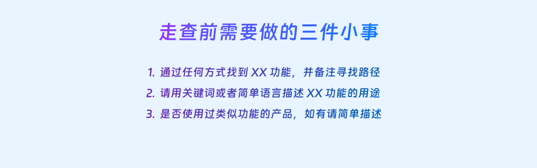例如现实中用户首次使用某一个产品,会在认知基础上通过一定途径了解产品,所以我们在设计走查脚本及任务设定的环节上,可以从新用户视角出发,逐步深入到产品核心链路的走查和测试,确保每个环节都经过充分验证。
