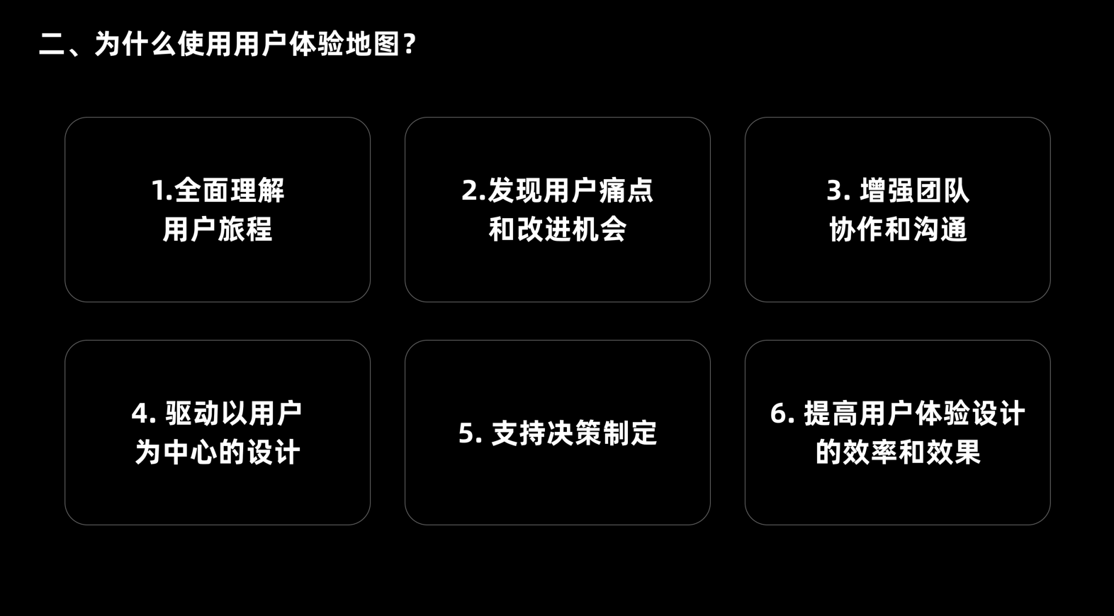 制作用户体验地图能为产品团队带来多维度价值,从认知、协作到决策形成全链路赋能,核心体现在六大方面: