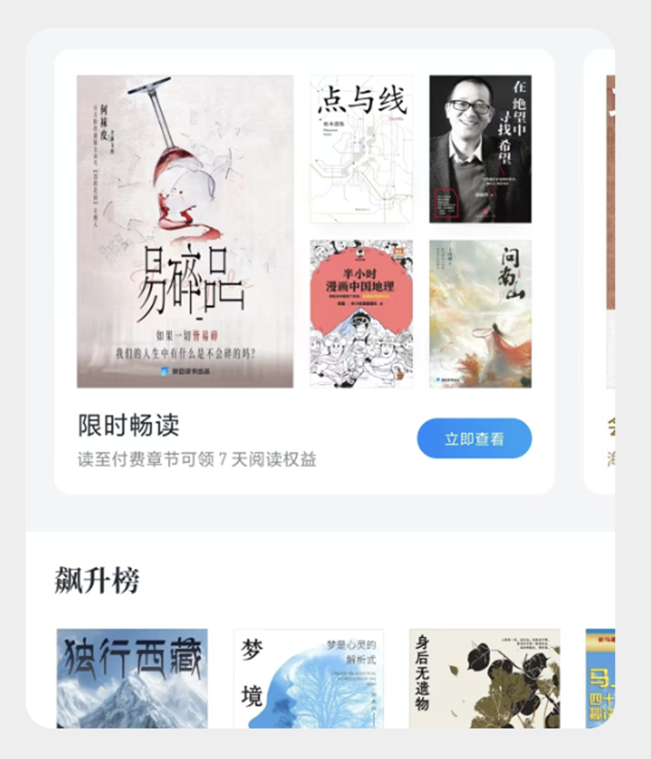 比如电商的商品卡片、旅游 APP 的风景图卡片、阅读平台的图书推荐卡,图片占比最大,搭配简短的标题、价格、亮点标签,辅助提升转化意愿。