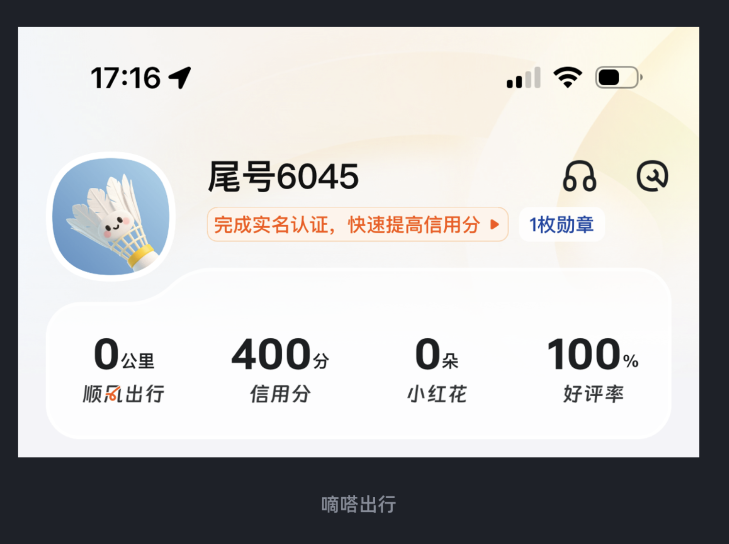 嘀嗒出行的个人中心设计就很有想法,它采用超椭圆造型打造头像区域,同时让卡片左上角做凹陷处理,刚好与超椭圆头像形成视觉呼应。这种设计既突出了头像这一核心元素,又巧妙填补了常规布局的负空间,避免了画面的空洞感,让整体结构更紧凑、造型更独特,看似简单的结构调整,却让整个个人中心的视觉体验焕然一新。