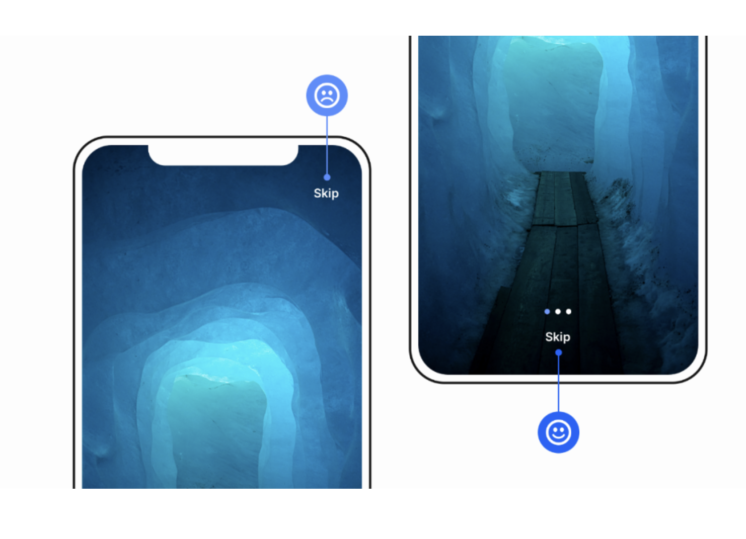 新手引导、功能引导是产品触达用户的重要环节,但强制的引导流程极易引发用户的抵触心理。想要提升引导环节的用户体验,核心是赋予用户选择的权利,将 **“跳过” 按钮 / 链接 ** 放置在用户易触达、视觉易发现的位置,让用户可根据自身需求随时跳过引导。