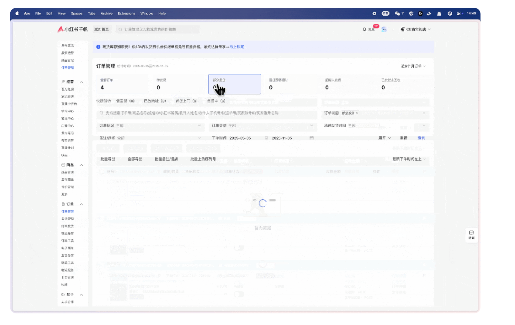 比如我想外露的内容是各种状态,我就可以将其放在顶部,进行指标图+筛选功能的杂糅,像在小红书千帆系统当中,对于订单的多种状态,就会使用这一技巧,进行呈现。