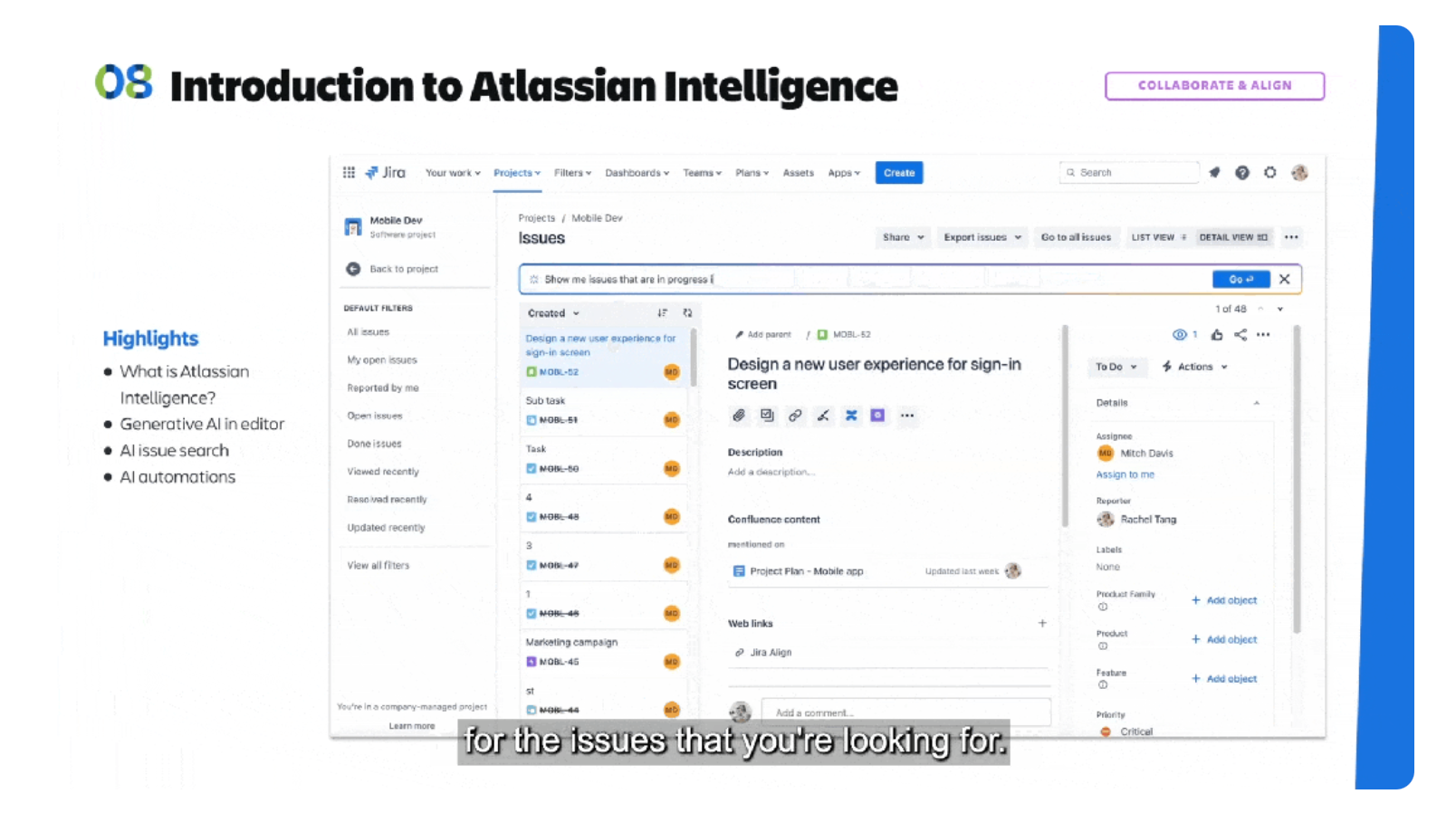 所以我们可以看到,像 Jira 对于 AI 筛选就会有更多的修改入口让用户对于筛选结果进行快速修正,同时在入口上也需要做更多的设计进行提示。