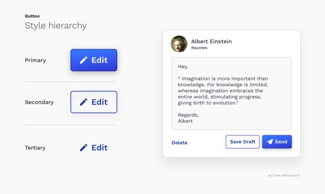 利用样式差异构建清晰的动作层级,在多个选项中引导用户。通常,最重要的操作使用“首要”按钮样式,其他操作则按重要程度递减。