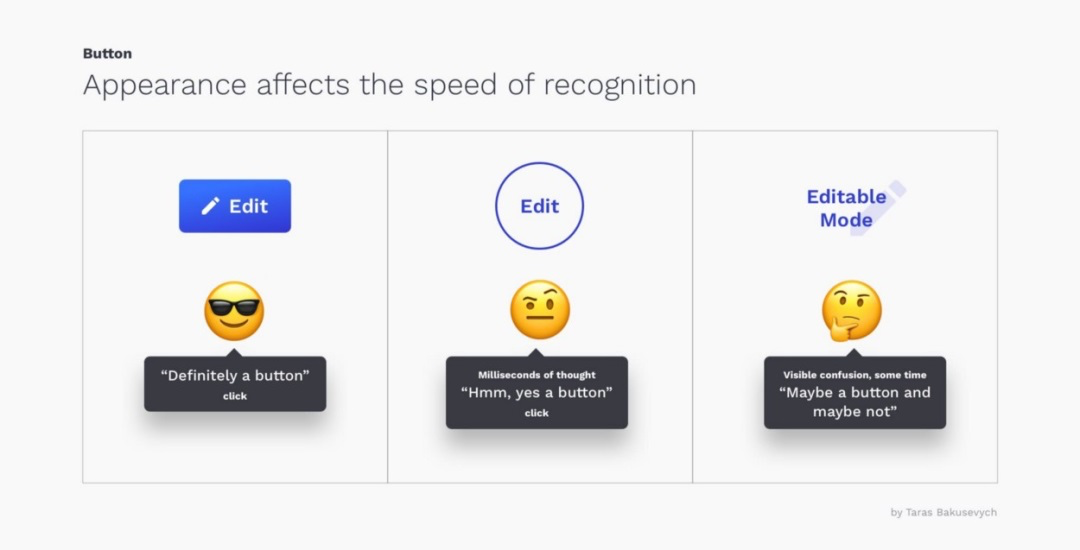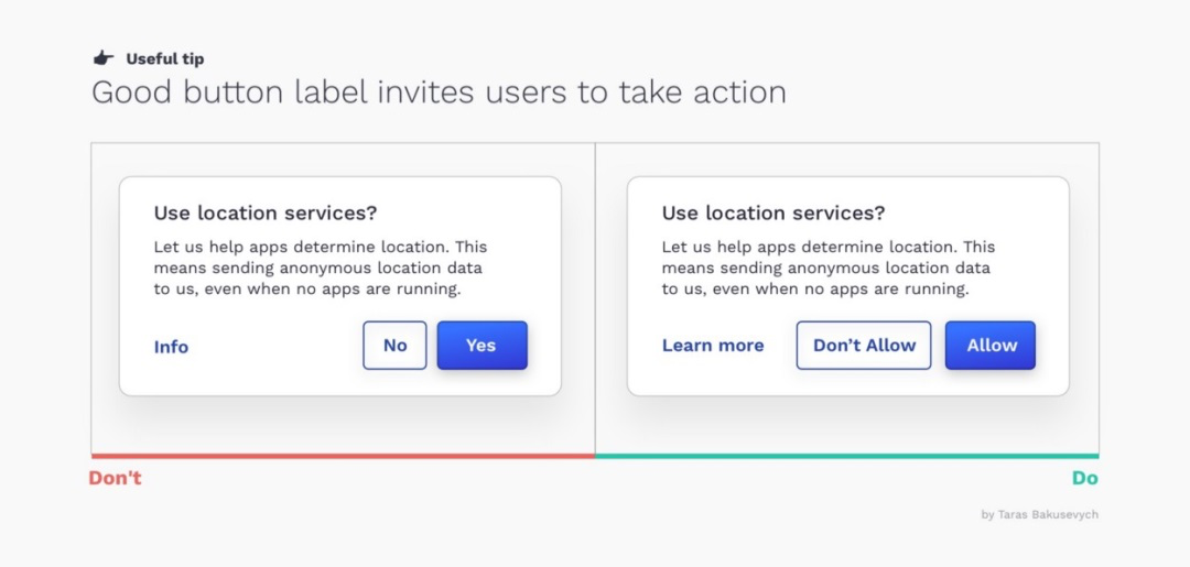 按钮传达的文字信息与其外观同等重要。模糊的标签会让用户感到困惑甚至误导。