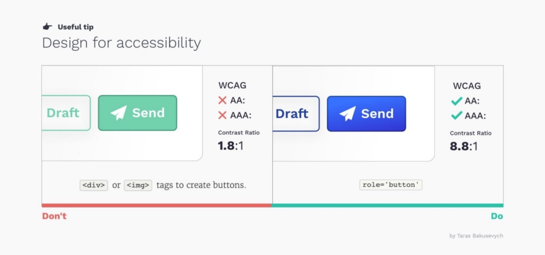 所有组件都应遵循无障碍设计原则。除了目标区域大小,字体尺寸、色彩对比度也至关重要。有许多工具可以帮助检测组件的可访问性表现。
