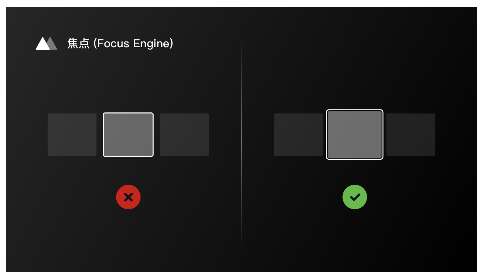 - 坚守十字交互逻辑:仅支持上下左右 + 确认 + 返回,禁止斜向 45° 焦点跳转,否则用户极易迷路、视觉不适。