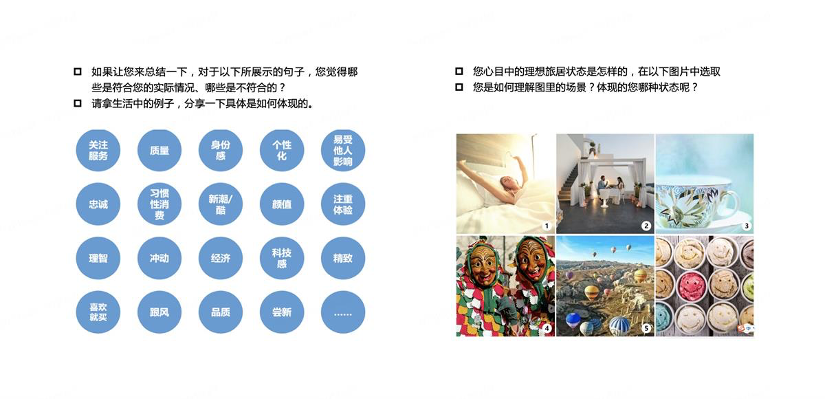 对于较难描述的价值场景,可以通过示卡测试、情景假设、朋友圈探究的方式去激发用户讲述: