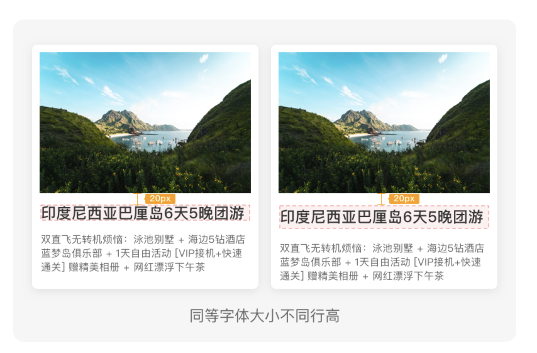 紧凑列表、商品卡片、标签栏等空间有限场景,可适度收紧行高(如 24px 字号→行高 36px),随组件统一规则,不破坏整体一致性。