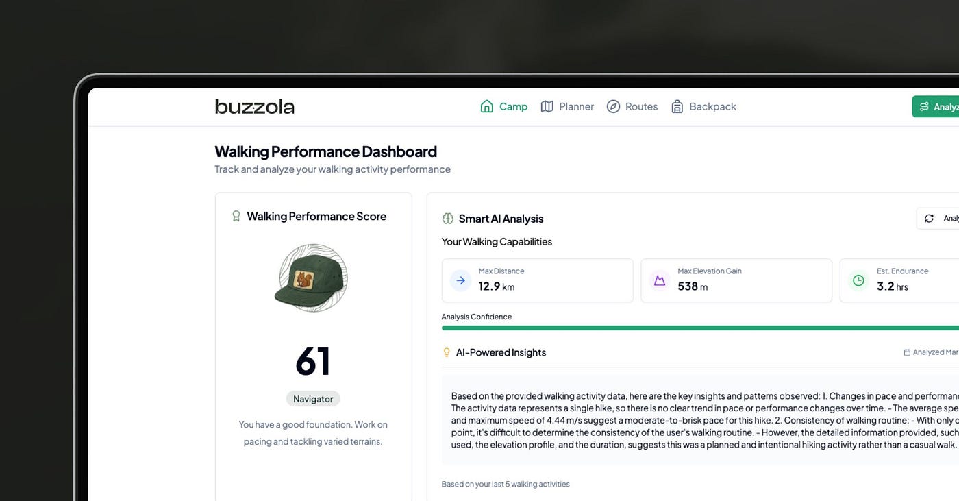 徒步旅行计划应用程序在 Loveable Hackathon https://buzzola.lovable.app/ 期间由我们的高级 UI 设计师 Lukas Vilkus制作